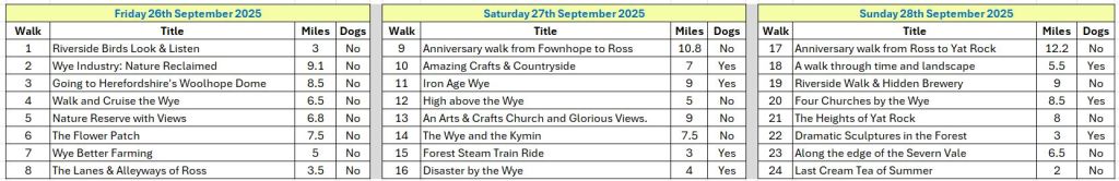 Thank you everyone who made our 2025 Walking Festival such a success. The 2026 Festival will take place 25th to 27th September. We have a great programme, some old favourites and some exciting new walks. Where possible we have also included some of our most accessible “Miles without Stiles” routes. The programme is now being assembled and will be available for booking from 3rd April. Booking fee £5 for all walks except Walk 24. If you need help get in touch. Booking accommodation? Download the Festival Programme Flyer.